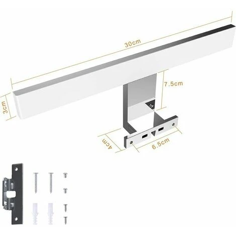 【3 opzioni di montaggio】 La lampada da specchio può essere avvitata alla parete, al mobile o allo specchio (adatta per specchi con una profondità massima di 6 mm). Staffa rimovibile con due fori preforati e tutto l’hardware di montaggio. L’apparecchio può essere collegato direttamente all’alimentazione domestica e controllato tramite l’interruttore domestico, non è necessario alcun trasformatore.
