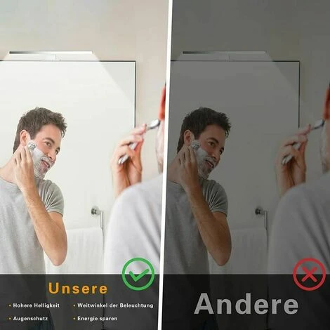 < p>【Luce morbida e brillante】 Con un flusso luminoso elevato senza sfarfallio di 500 lumen e una piacevole luce bianca di 6000 Kelvin, questa lampada da specchio brilla con una luce bianca brillante e fredda, non ha una dominante gialla o blu , in modo che la luce è adatta anche per il trucco e la rasatura.