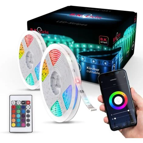 B.K.Licht I Striscia LED intelligente 6 metri I Striscia LED WLAN I Striscia LED I App I Controllo vocale I Telecomando incluso I Rivestimento in silicone I iOS e Android I Autoadesivo I Striscia LED