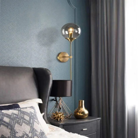 Lampada da parete design minimalista color oro con paralume a forma di globo Applique da comodino Lampada da comodino a parte.