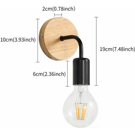 Presa E27 standard. La aplique led da parete interni in legno è adatta per lampadine E27, non più di 40W (lampadine non incluse), si consiglia di utilizzare lampadine vecchio stile, che ha un’atmosfera retrò e nostalgica.