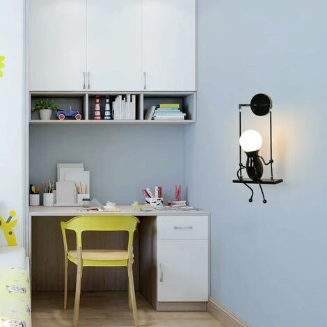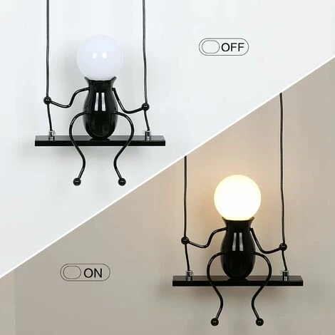 Lampade da parete creative per cartoni animati, come un bambino felice su un’oscillazione piacevole, la forma unica conferisce a questa lampada un potere mentale più positivo e verso l’alto.