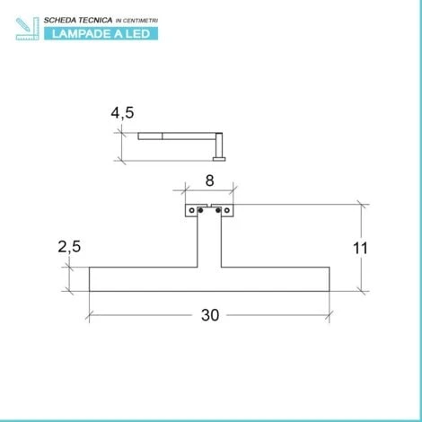 Lampada led specchio bagno L. 30 cm luce naturale 4000K in abs cromato con doppia modalità di installazione
