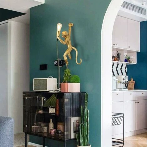 Lampada scimmia in resina, stile esotico, ideale per gli amanti delle culture indigene e degli animali. Dai alla tua casa uno stile unico con questa figura decorativa di scimmia che tiene una lampadina. La presa E27 non include la lampadina.