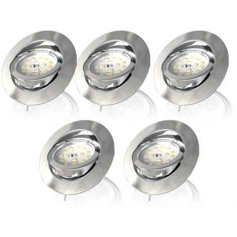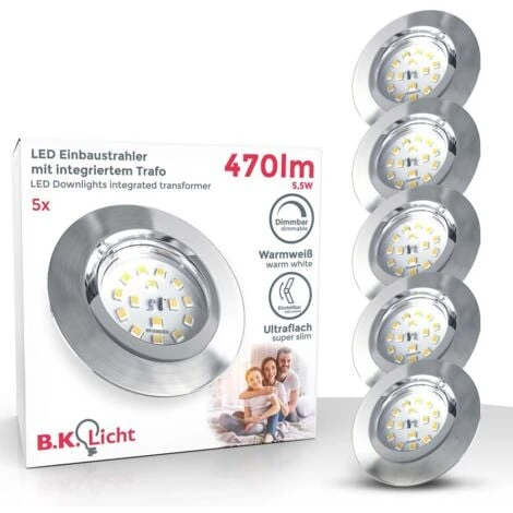 - Set di alta qualità di 5 faretti da incasso a LED ultrapiatti e di lunga durata da 5,5 W con spot orientabili. Basso consumo con una luce piacevolmente calda grazie ad una temperatura di colore di 3.000 Kelvin. Dimmerabile in 3 fasi tramite interruttore convenzionale. Nessun dimmer esplicito necessario
