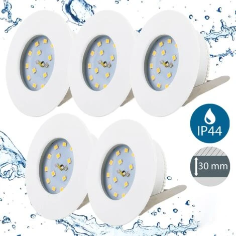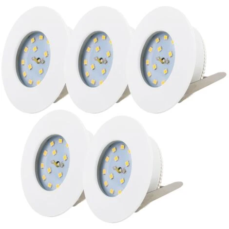 1 set di 5 faretti da incasso LED, plastica colore bianco, LED integrati e non sostituibili.