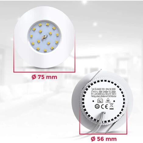 Dimensioni: profondità d’installazione di soli 30mm, diametro 75mm, diametro foro di incasso 60mm
