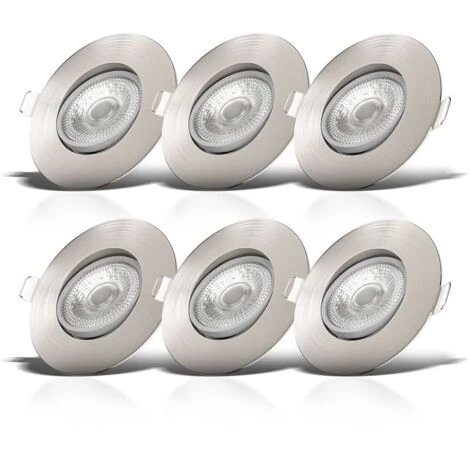 - Set di 6 faretti da incasso a LED di lunga durata da 5 Watt in nichel opaco con design ultrapiatto (24 mm). Basso consumo con una luce piacevolmente calda grazie ad una temperatura di colore di 3.000 Kelvin.