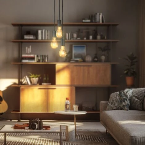 Pendente: la lampada a sospensione retrò ha 3 punti luce a diverse altezze. Sono richieste lampadine con attacco E27 (grosso) da massimo 10Watt non incluse nella confezione. Per un maggiore effetto consigliamo di usare lampadine vintage Edison con filamento.