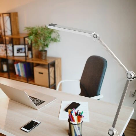 Pivotante: La lampada da tavolo a LED in bianco-argento ha un braccio girevole in look alluminio spazzolato. In questo modo la lampada può essere regolata in altezza in modo flessibile e illuminare tutte le aree desiderate. La testa della lampada può essere ruotata di 90 gradi a sinistra e a destra