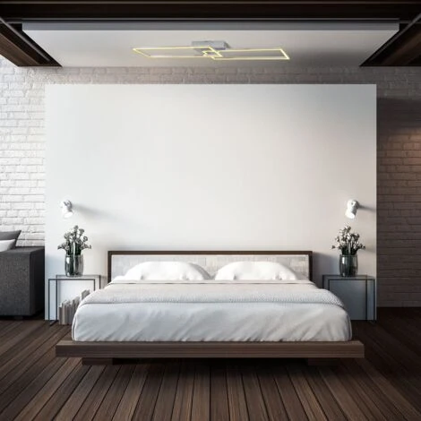 - Miracolo funzionale: la lampada da soffitto LED Frame può essere orientata e controllata in modo molto pratico tramite un telecomando. Con esso è possibile controllare in modo continuo la temperatura di colore (CCT) e la dimmerabilità, nonché avviare un timer (60s) e la funzione di luce notturna. La luce notturna riduce la lampada al 10%. Tutte le impostazioni della luce sono memorizzate dalla funzione di memoria. L’oscuramento della lampada è possibile solo con il telecomando