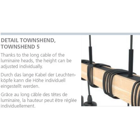ciondolo TOWNSHEND luce 5 nero, marrone L: 70cm W: 20cm H: 110 centimetri