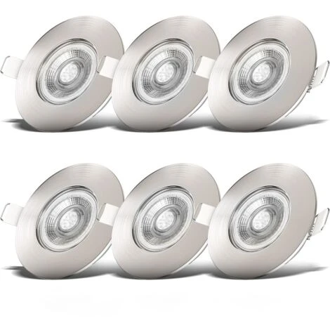 Set di 6 faretti da incasso LED dimmerabili da 5 Watt con spessore ridotto (25 mm) color nickel opaco.