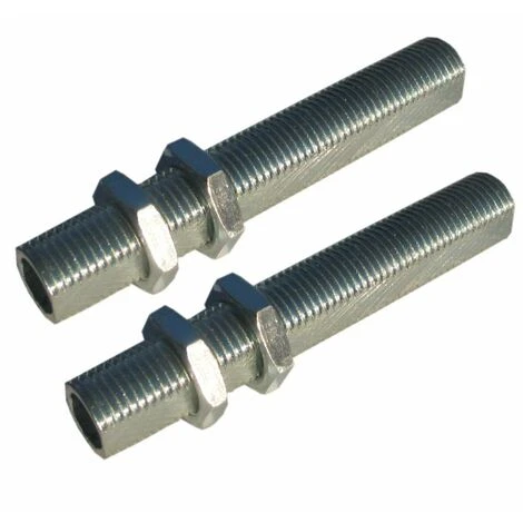 2 tubetti filettati e fresati (antirotazione) in ferro zincato per portalampada, lunghezza 60 mm – filetto M10X1, completi di quattro dadi esagonali. Colore: argento