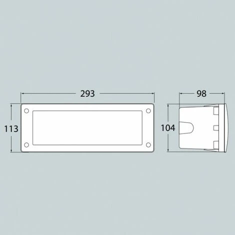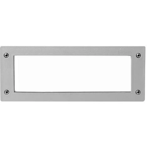 Lampada LED per incasso a muro con forma rettangolare, realizzata in resina antiurto stabilizzata ai raggi UV, inattaccabile da ruggine e corrosione. Classe di isolamento II, grado di protezione IP66.