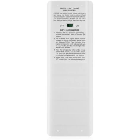 Il telecomando per l’apprendimento solare EM-3322E è applicabile a TV/SAT/DVD/CBL/CD/DVB-T 1 pz