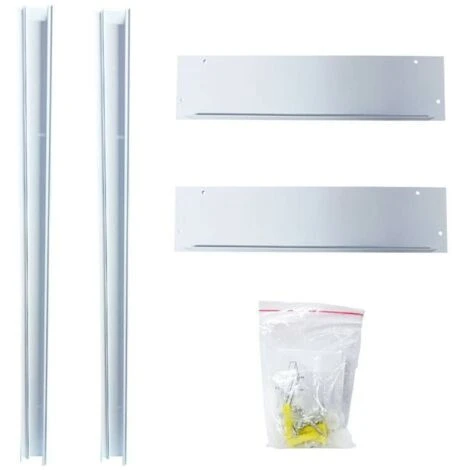 Struttura in alluminio verniciato bianco goffrato per installazione a plafone. Sistema componibile con viti e tappi coprivite.
