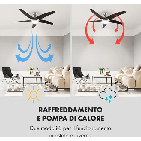 ventilatore di 134 cm di diametro con 2 direzioni di rotazione: flusso d’aria verso il soffitto e verso il pavimento
