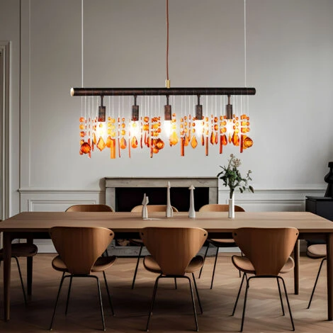 Lampada A Sospensione Lampada A Sospensione Cristalli Lampada A Sospensione Marrone Lampada Da Tavolo Da Pranzo Colori Ambra, Metallo, Attacco 5x E14, LxLxA 80×9,8×150 Cm