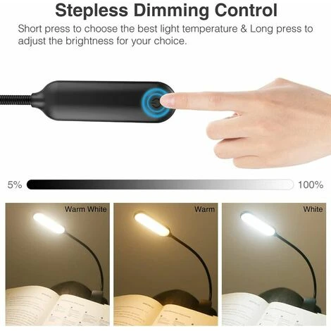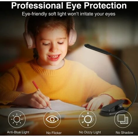 [Luce di lettura ricaricabile USB C] Batteria ricaricabile agli ioni di litio da 600 mAh integrata e porta USB C. Connettore reversibile intuitivo, che rende i collegamenti ancora più semplici. Senza preoccuparsi dell’orientamento. Facilità di inserimento e caricamento più fluido. La confezione contiene un cavo di ricarica USB C universale, quindi può essere ricaricato da laptop/computer, power bank, caricatore del telefono, USB per auto, ecc. [Occhi di protezione e spazio di lettura privato] La lampada da lettura è composto da 12 perline LED di alta qualità (6 LED bianco freddo, 6 LED bianco caldo), senza sfarfallio e luce soffusa, può proteggere i tuoi occhi. Mentre ti fornisciilluminazione privata per il tuo spazio personale senza disturbare gli altri.