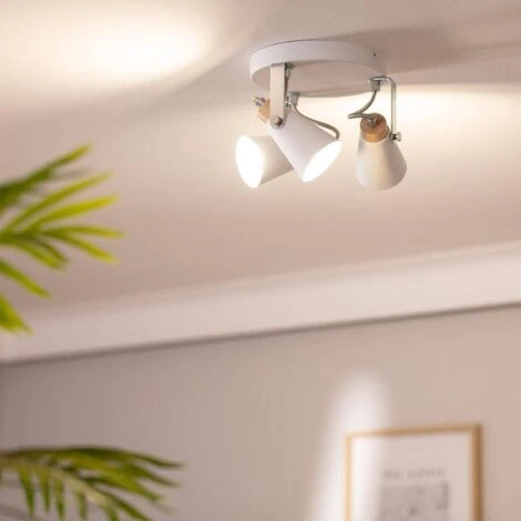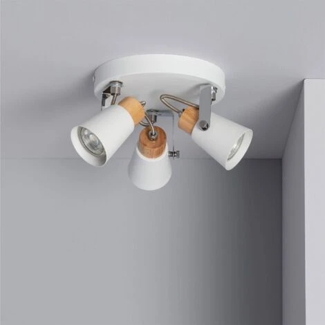 La Lampada da Soffitto Circolare Orientabile in Metallo e Legno 3 Faretti Mara è pensata per un utilizzo in ambienti interni.