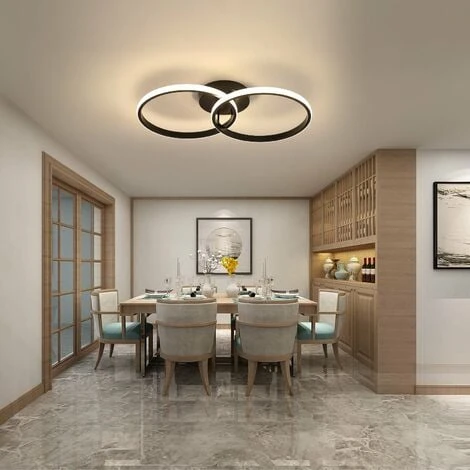 Design semplice. La plafoniera led soffitto è una forma geometrica composta da due nero cerchi. Aspetto moderno, che si abbina perfettamente alla decorazione della tua stanza e della parete.