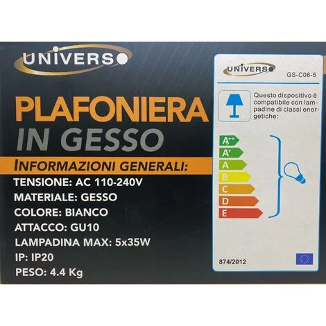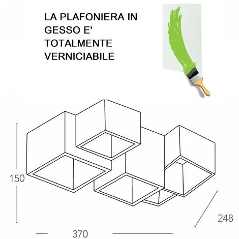 - Nuova ed elegante plafoniera in gesso dal design moderno di colore bianco adatta per installazioni a soffitto, verniciabile, dotata di 5 diffusori quadrati con portalampada GU10 adatta per l’illuminazione interna di salotti, uffici, cucine modere, soggiorni per l’illuminazione di negozi, attività commerciali, ristoranti per dare un’impronta di eleganza ai propri ambienti interni.