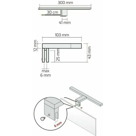 APPLIQUE LED specchio bagno WATERPROOF – IP44 certificato. Modello 30cm.