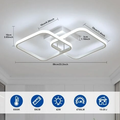 Tensione di esercizio: 220 volt. Sorgente luminosa: matrice LED integrata non dimmerabile da 42 watt. Temperatura di colore: 6500 K (bianco iteddo).