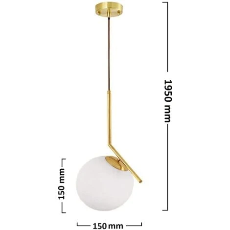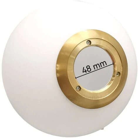 - Struttura realizzato in metallo dorato dalle finitura satinata e paralume a sfera in vetro opaco bianco.