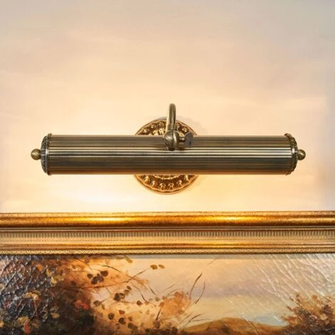 Lampada da quadri Joely in stile antico e ricercato, con due punti luce Avendo in casa una stampa artistica o un bel quadro, vale la pena metterlo in scena con un’illuminazione mirata. La lampada Joely si accompagna bene agli arredamenti classici in quanto caratterizzata da uno stile nostalgico. Vi si montano due lampadine ad attacco E14 che proiettano sul quadro una luce bella e uniforme.