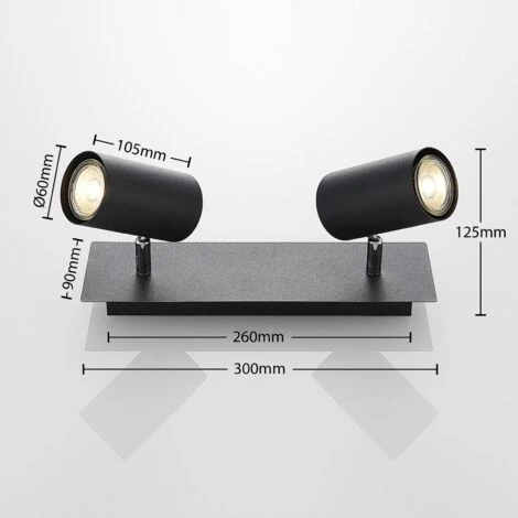 Lindby Joffrey faretto da soffitto 2 luci, nero