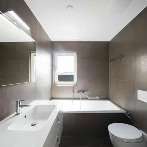 Il design semplice ed elegante presenta caratteristiche moderne e caratteristiche eleganti, si abbinano perfettamente al tuo bagno e allo stile del tuo mobile La luce bianca neutra brillante con 6000K e 400 lumen può funzionare come luce per specchio, luce per armadietto o applique da parete.