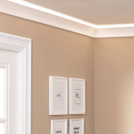 La modanatura per Strisce LED è composta da polimero estruso ad alta densità resistente agli urti e all’acqua. Grazie alla sua particolare resistenza, questo materiale è ideale per l’impiego in zoccoli e modanature per soffitti.