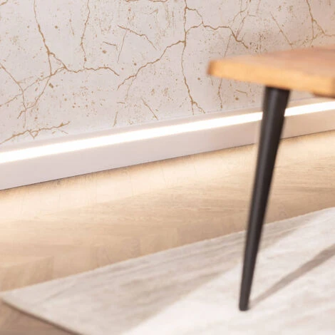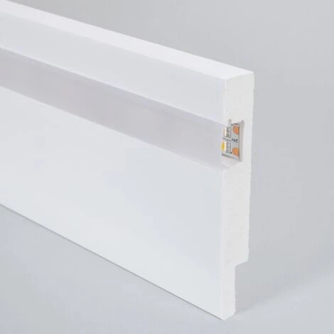 La Modanatura Zoccolo per Striscia LED Modern di alta qualità con profilo decorativo. Questo assetto fornisce la perfetta illuminazione decorativa indiretta per ottenere spettacolari effetti decorativi e luminosi in qualsiasi spazio. La striscia LED è realizzata in polimero estruso ad alta densità, resistente agli urti e all’acqua. Grazie alla sua particolare durezza, questo materiale è ideale per essere utilizzato come zoccolino.