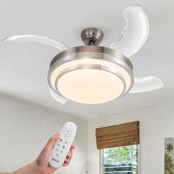 Ventilatore Lampadario Da Soffitto 4 Pale Richiudibili LED E Telecomando 106 Cm