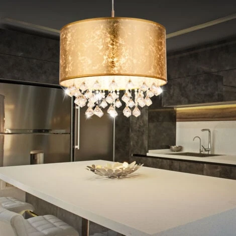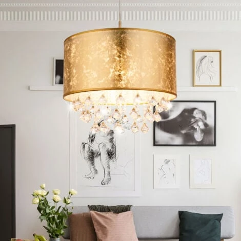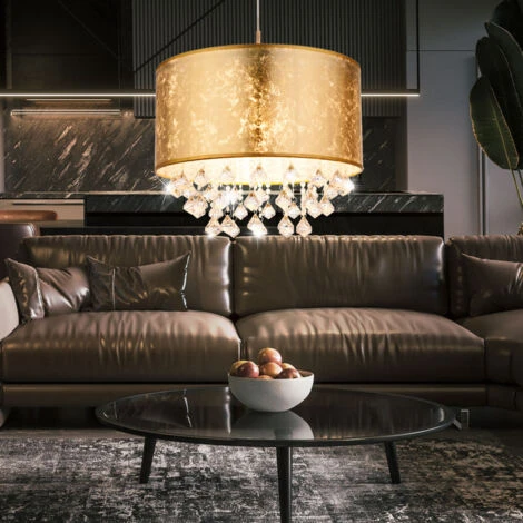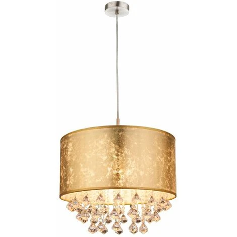 Illumina il tuo spazio abitativo con questa bellissima lampada a sospensione. Il paralume in tessuto e acrilico, che appare in un oro lucido, crea accenti di stile and mostra buon gusto. Goditi un piacevole gioco di luci nel tuo soggiorno. È possibile utilizzare una lampada con attacco E27 e una potenza massima di 60 watt nella lampada