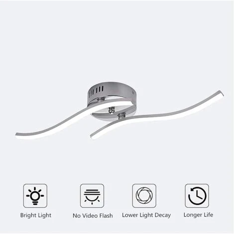 Design unico: La plafoniera LED, in metallo color alluminio con effetto opaco, ha con 2 bracci a forma di onda. Barra luminosa a LED di alta qualità integrata, con copertura in plastica bianca, stile di design semplice, facile da installare e da usare!