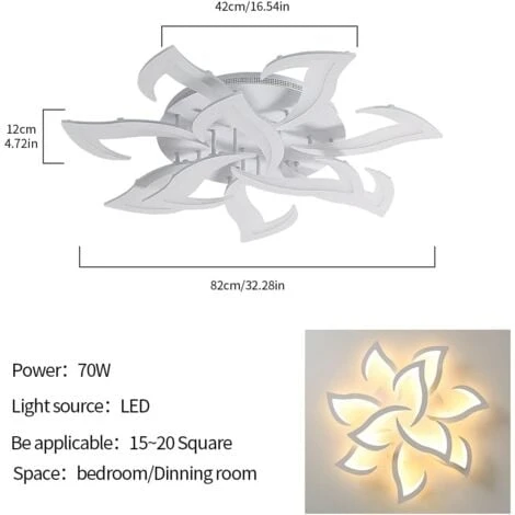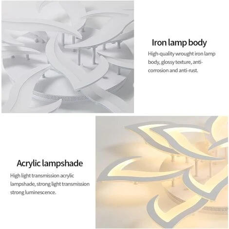 Aspetto: Elegante lampada da soffitto a forma di fiore, stile moderno e minimalista, illuminazione interna a forma di petalo, illuminazione con telecomando, perfetta fioritura sul soffitto come un lampadario, semplice ed elegante, sorgente luminosa a LED integrata da 70 W, che crea un’atmosfera calda e luminosa per la tua vita.