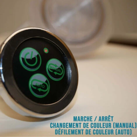 Spot cromoterapia RGB ip68 impermeabile incorporata + pulsante di controllo e trasformatore per bagno turco e bagno Rilassarvi nel vostro bagno o nella tua camera di vapore grazie a questo nuovo spot da incasso che trasportano una pergamena di colore (cromoterapia) Impermeabile (ip68) Installa questo posto facilmente nell’ambiente che si desidera grazie alla sua built-in di sistema di threading, egli può stabilirsi in account di steam, il tuo bagno doccia o spa! Pulsante multifunzione incorporato fornito Fornito con questo spot, troverete una pulsante incorporato tripla funzione:-attivare / disattivare-cambiamento di colore-Scorrere fino a colore (cromoterapia) Caratteristiche tecniche: Diametro: 110 mmLunghezza della vite: 90 mmAltezza della vite: 60mm7 coloriPotenza dello spot: 3VTemperatura di servizio: 10 a 70 °Trasformatore 12V AC in dotazioneGaranzia 2 anni