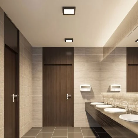 Plafoniera quadrata a LED Mazin con CCT e funzione dimming, IP44 La lampada da soffitto Mazin LED è costruita in alluminio e plastica. Il suo alloggiamento angolare è stato adornato con una finitura superficiale nera e sembra sorprendente e moderno. Il design può essere integrato in diversi interni e sembra molto elegante. Attraverso un dimmer esterno (controllo di fase), la luminosità di questa luce può essere regolata individualmente. Inoltre, c’è un interruttore DIP sulla custodia con il quale è possibile regolare il colore della luce in diverse fasi (3.000 K, 4.000 K e 6.000 K). Ha anche un grado di protezione IP44, il che significa che l’apparecchio può essere utilizzato anche in un bagno. È adatto per l’uso sia nel settore residenziale che in quello commerciale. Dati tecnici: – dimmerabile (controllo di fase) – Funzione CCT tramite interruttore DIP: 3.000 K / 4.000 K / 6.000 K – Classe di protezione IP44 – Angolo del fascio 120