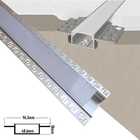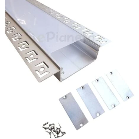 - Profilo in alluminio di 2 metri con copertura opaca per montaggio da incasso nel cartongesso.