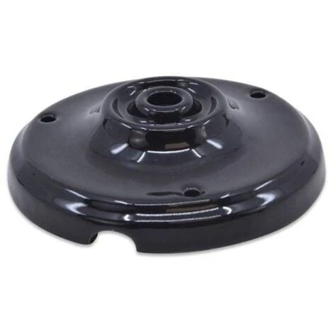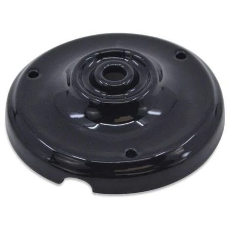 Fleuron rotondo in ceramica nera di alta qualità. Ha un foro per l’uscita del cavo, due fori laterali per avere la possibilità di collegarlo con altri fleuron e tre spazi per fissarlo al soffitto con tre viti.