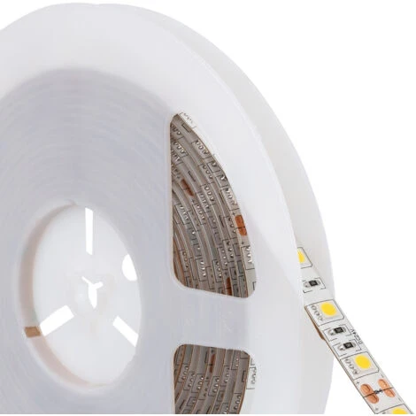 Questa Striscia LED 24V DC 60LED/m 5m IP65 Larghezza 10mm ha una lunghezza di 5 metri e integra 300 LED della tecnologia SMD5050 ad alta efficienza con un consumo di soli 13 Watt al metro. La luce intensa e colorata che emette si distribuisce in un angolo di 120º. Per poter funzionare richiede un alimentatore.