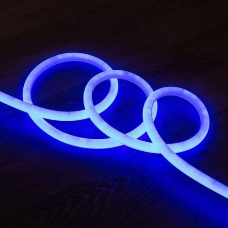La Striscia LED Neon Flessibile Circolare 360 220V AC 120 LED/m Azzurro su Misura Taglio ogni 100cm fornisce molteplici possibilità di decorazione con luce. Inoltre, la sua resistenza alle intemperie la rende un prodotto perfetto per ogni tipo di ambiente interno o esterno. Acquistala in una grande varietà di colori nel nostro negozio online di illuminazione Ledkia.