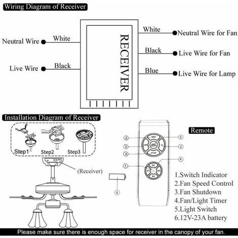 Telecomando Per Ventilatore Da Soffitto Telecomando Wireless Controller Per Ventola 3 Velocità 4 Timer (1 Set)