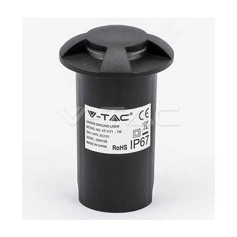 V-TAC Faretto segnapasso da incasso calpestabile a led smd con potenza 1W, fascio luminoso di 90° e flusso luminoso di 10LM. Forma circolare con corpo in alluminio, controcassa in plastica nera e corona in alluminio colore nero con fascio di emissione luce triplo. Il diametro del foro per l’interramento deve essere di Ø 43mm.