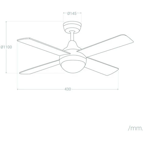 * La distanza massima tra il Ventilatore e il soffitto è di 43cm.