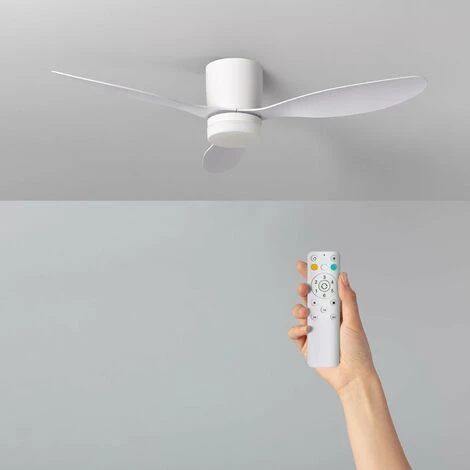 Il Ventilatore da Soffitto per Esterno LED Weimar Blanco 132cm Motore DC da 40W incorpora una sorgente luminosa con tecnologia LED e CCT da 15W di potenza. Il suo aspetto minimalista ed elegante lo rende un elemento decorativo e funzionale.